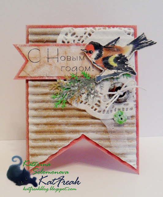 А вот и новогодние открыточки, обе сделаны по заданиям Новогоднего марафона в Ивановском Скрап-Клубе